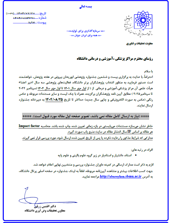 فراخوان بیست و ششمین جشنواره پژوهشی ابوریحان بیرونی- 1404- مراکز یزشکی، آموزشی و درمانی گروه خبری : گروه های مطالب,آرشیو اخبار کد خبر : 162210 لینک کوتاه کلید واژه