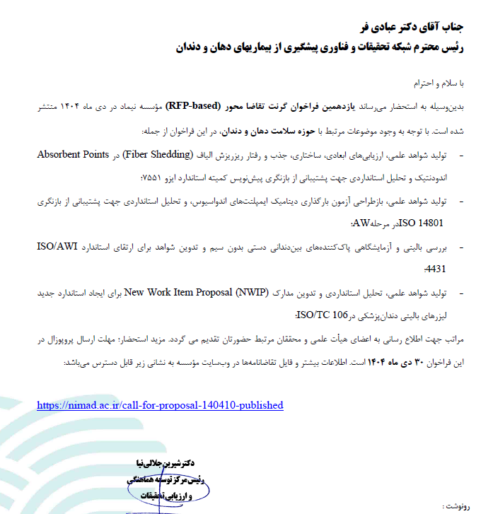 فراخوان یازدهم گرنتهای تقاضامحور فرصتی برای نوآوری و اثرگذاری در علوم پزشکی کشور تاریخ انتشار : 1404/10/18 - 11:14 بازدید : 8 تعداد بازدید : 8 کد خبر : 166747 گروه خبری : گروه های مطالب,آرشیو اخبار تعداد نظرات : 0